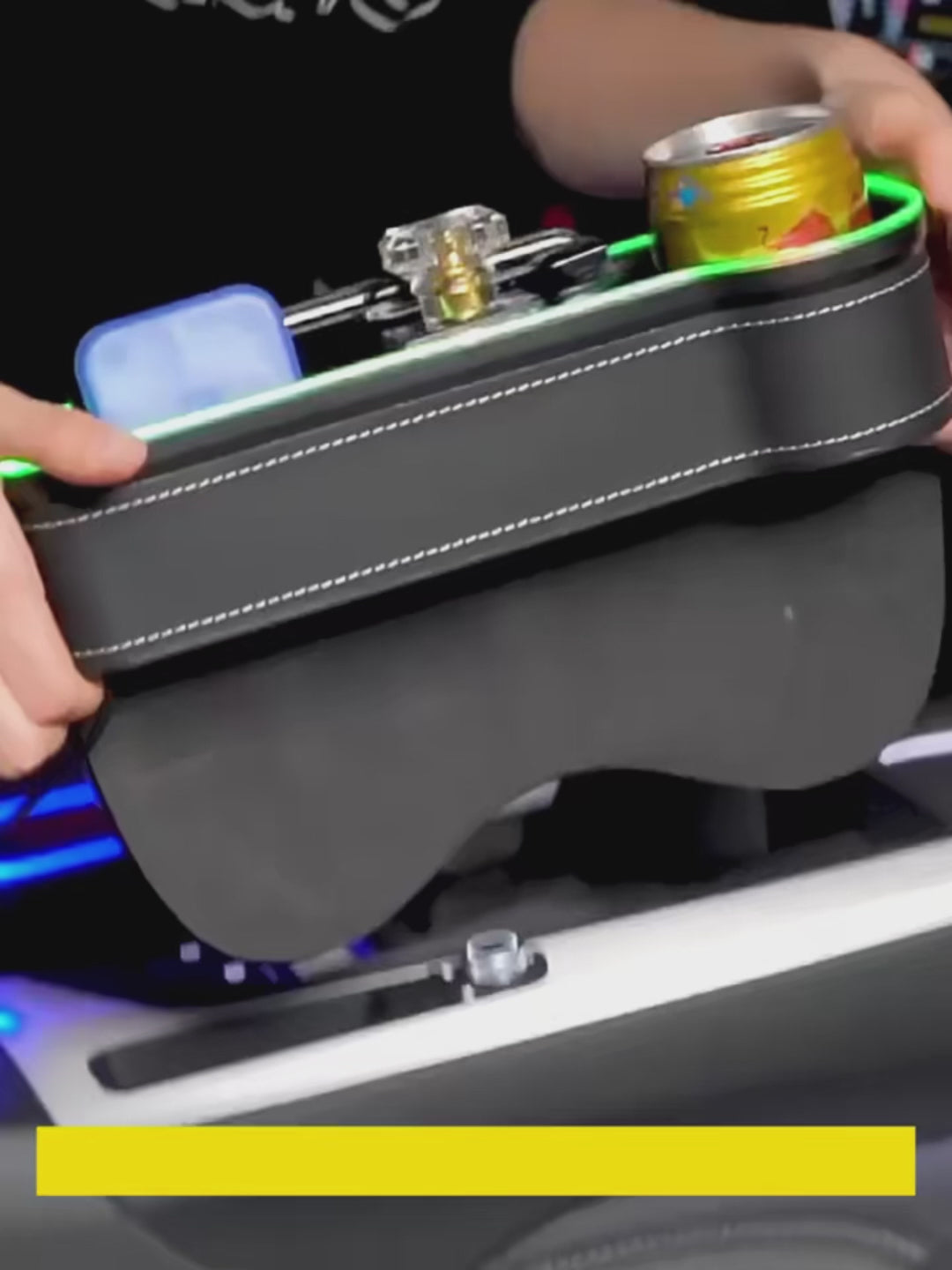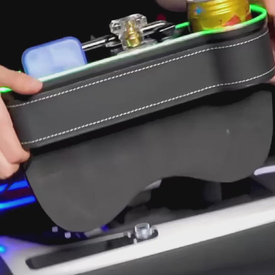 This smart organizer fills the annoying gap between your seat and the console, adds beautiful 7-color LED ambient lighting, and gives you extra storage, a cup holder, and dual USB fast charging — all in one sleek accessory.